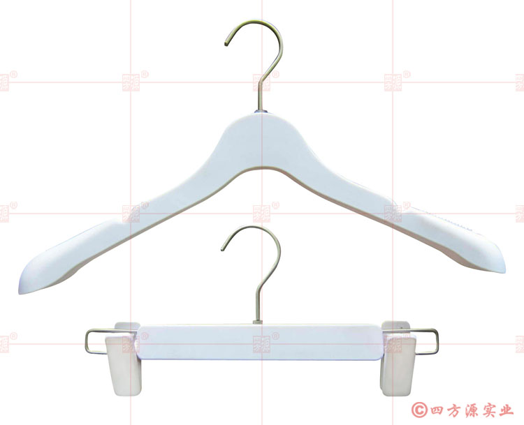 我公司有多种款式塑胶衣架和裤架,客户可选择搭配定做相同颜色效果,用于服装套装。以下为21012#塑胶衣架和21016#塑胶裤架搭配,做的白色,衣架和裤架都装有优质防滑PVC。